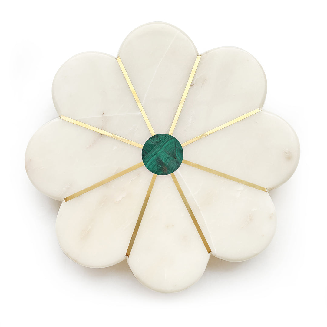Skillfully handcrafted, this rotating centerpiece is the perfect serveware for your dinner table. It boasts exquisite brass inlay that gracefully complements the rich allure of malachite. Each piece is a unique work of art, showcasing the meticulous attention to detail by our master craftsmen. Beyond its visual elegance, the functional rotation adds practicality, making it a versatile and stylish addition to any dining setting.