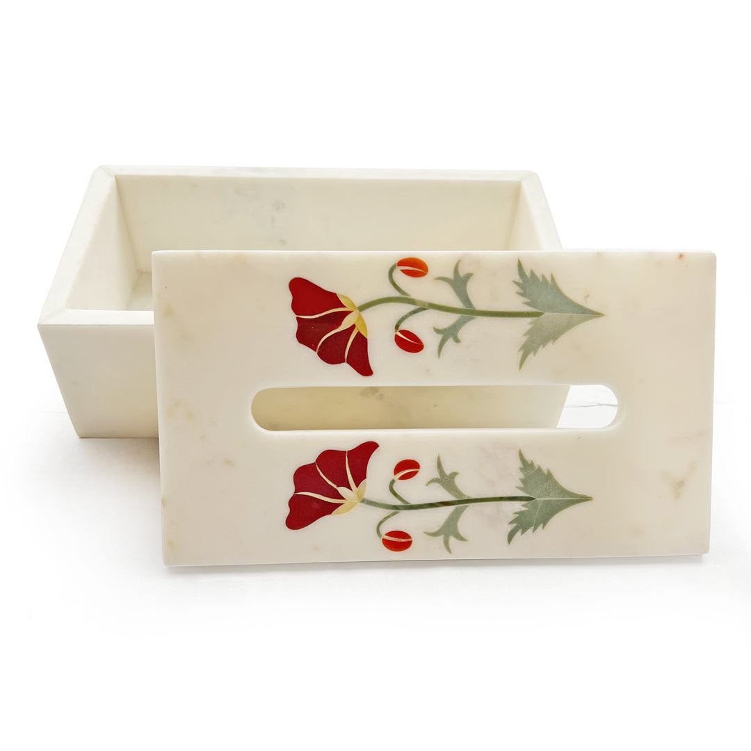 Uncover artistry with our Marble Tissue Box, a harmonious blend of luxury and heritage. Each box is a canvas of craftsmanship, showcasing semi-precious stones, including the luminous accents of Mother of Pearl, meticulously arranged with a captivating Mughal-inspired floral pattern. Make a statement with this functional piece and pair it with other serveware from our store to transcend utility and become an expression of your refined style.