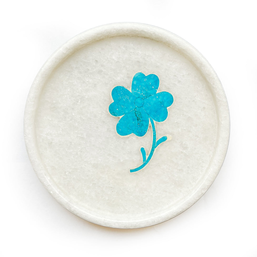 MARBLE INLAY TURQUOISE FLOWER PLATE