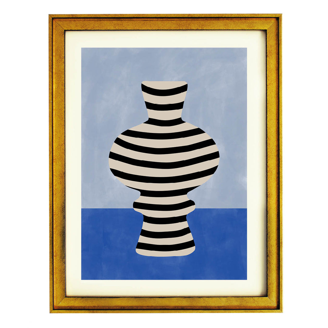 Elena Ristova's "Indigo Still Life" offers a fresh take on the classic still life genre. This abstract composition features a striking interplay of bold indigo stripes, creating a dynamic visual rhythm. The contrasting lines and shapes form a stylized representation of vases, imbuing the artwork with a modern and playful sensibility. The rich blue hue adds a touch of sophistication, while the overall design maintains a sense of lightness and simplicity. "Indigo Still Life" is a vibrant addition to any space, bringing a pop of color and a contemporary feel to your home.