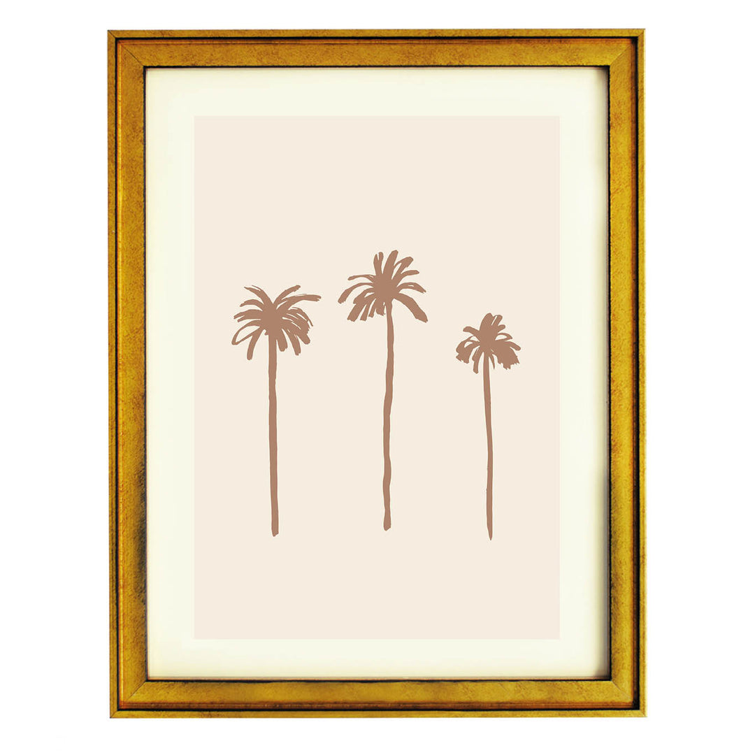 A breezy tribute to sun-soaked landscapes, this minimalist print captures three graceful palms in earthy sepia tones. Its gentle simplicity makes it a versatile addition — equally charming in coastal retreats or city apartments yearning for a tropical whisper.