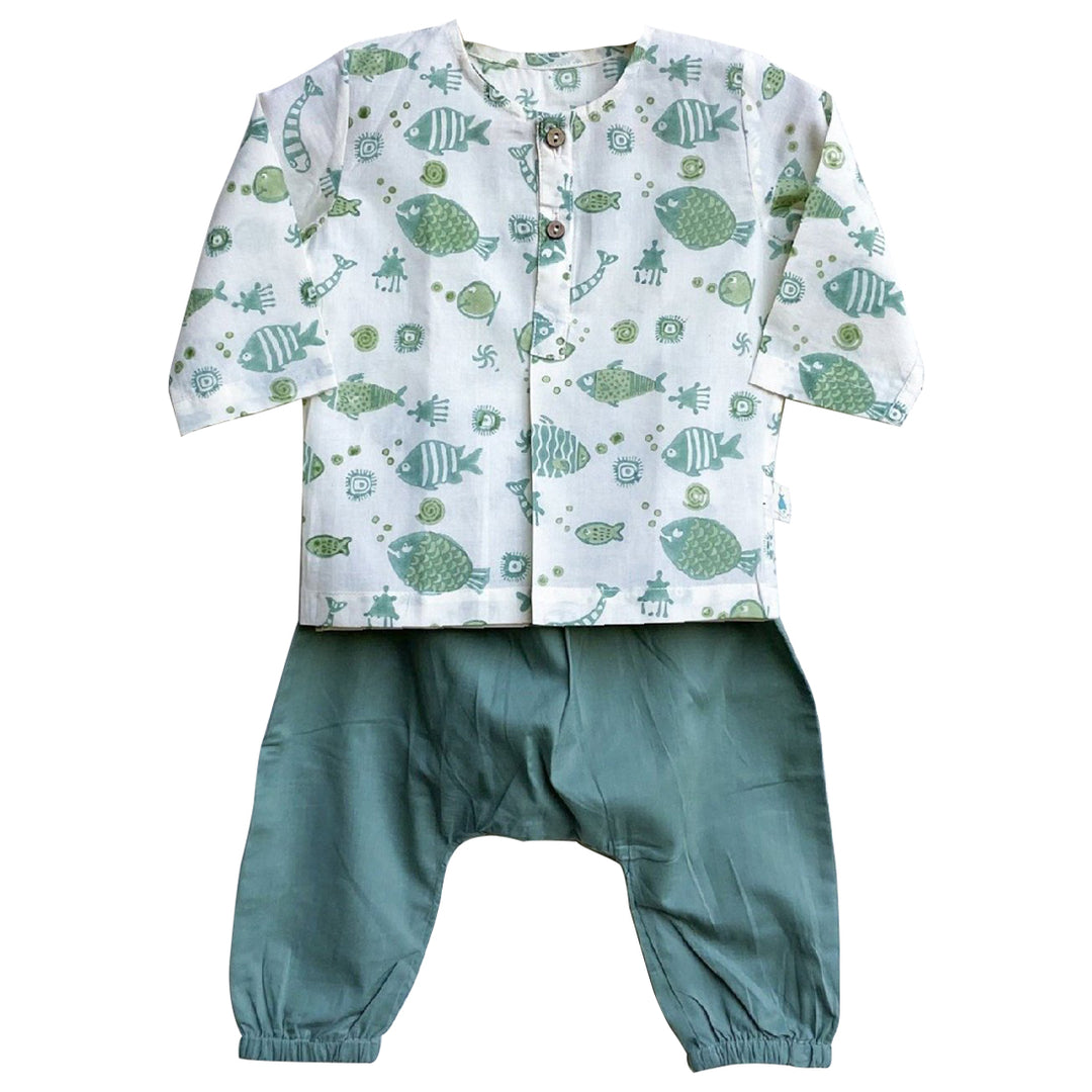UNISEX FISH PRINT KURTA WITH MINT GREEN PYJAMA PANTS