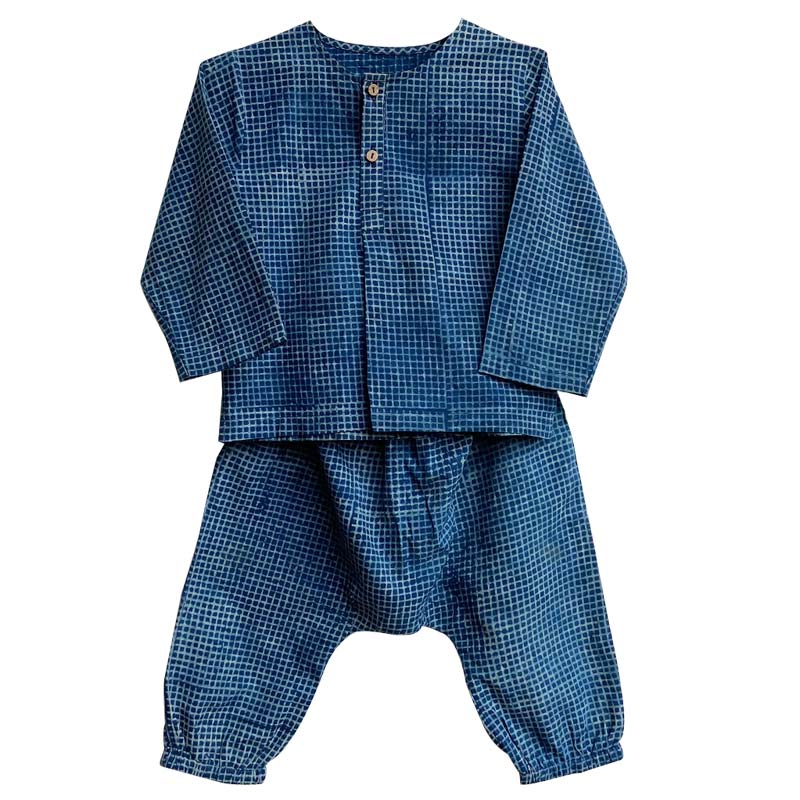 UNISEX ORGANIC INDIGO CHECK KURTA + MATCHING PANTS