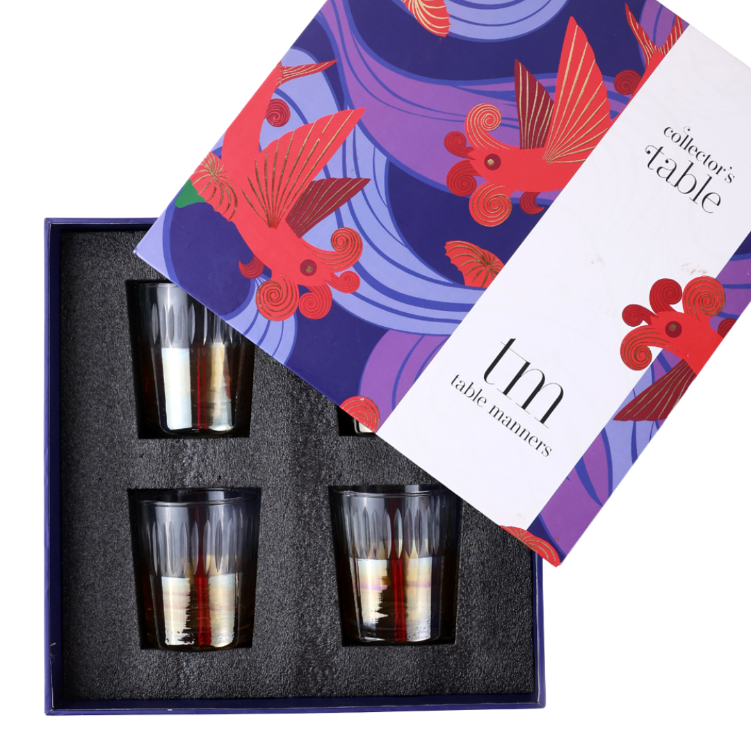 Elevate your gifting with this set of 4 gold lustre whiskey glasses, thoughtfully packed in a premium box. Crafted from high-quality glass, each piece features a subtle amber hue that captures the golden warmth of your favorite spirits. With a touch of vintage charm and timeless elegance, this set makes a perfect gift for celebrations, housewarmings, or any whiskey enthusiast.