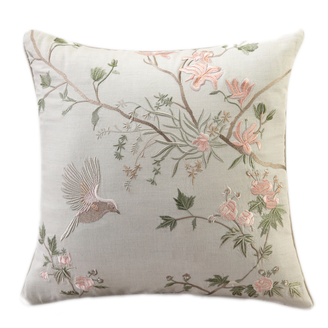 The lush Almond orchards of Kashmir are often flanked with beautiful beaked visitors in the form of the Himalayan Bulbul. A sheen cotton & linen fabric with a natural colour finish plays slate to an embellished Badaam tree toward which a bulbul gracefully flies. Our Dali Cushions combine both flora and fauna of the region in a way that represents luxury in the finest form.