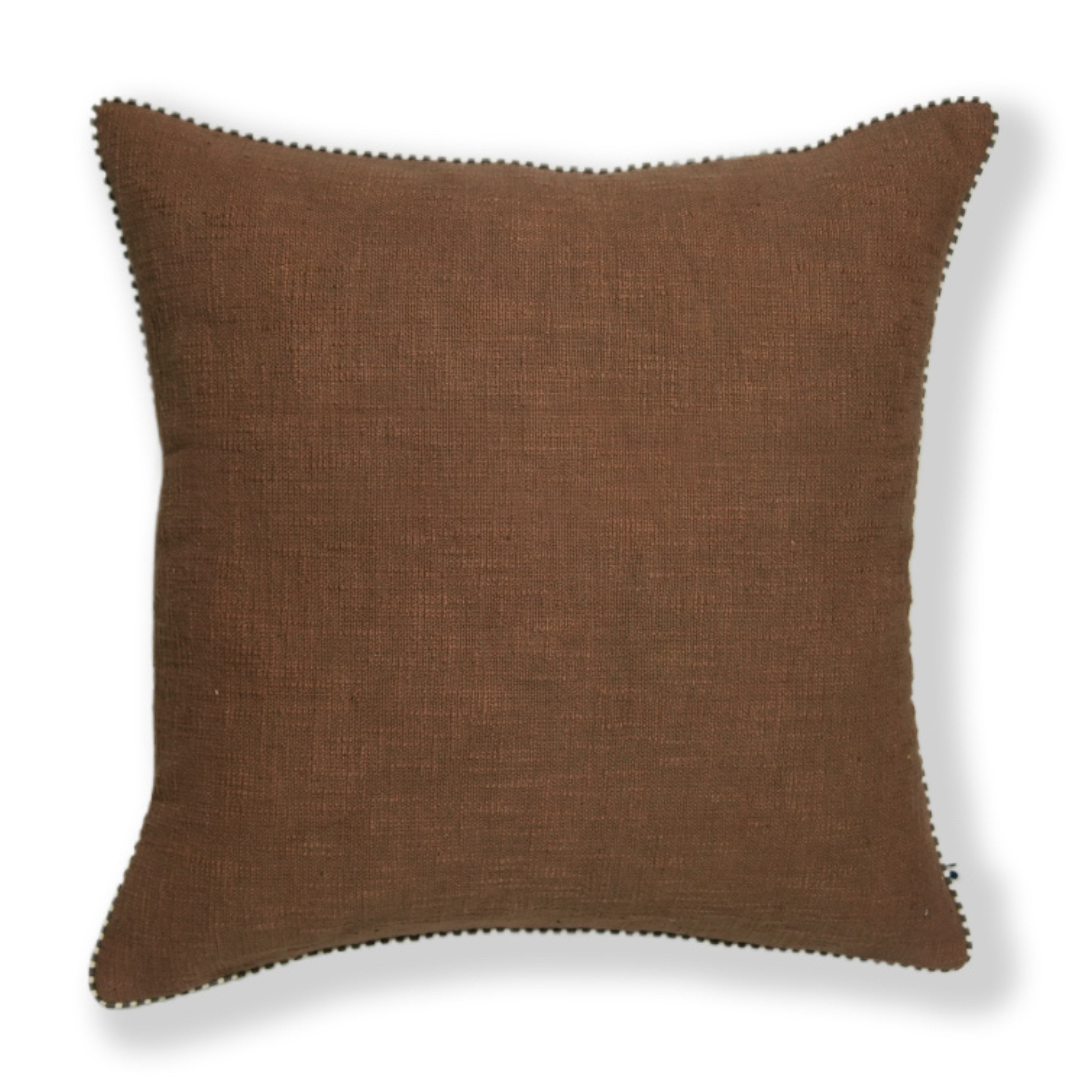 Crafted from hand-dyed handwoven cotton, the Woven Haven Cushion showcases a rich texture and a timeless, single-tone elegance. Accentuated with striped cord piping, it brings a refined touch to any space, seamlessly blending comfort with artisanal craftsmanship.