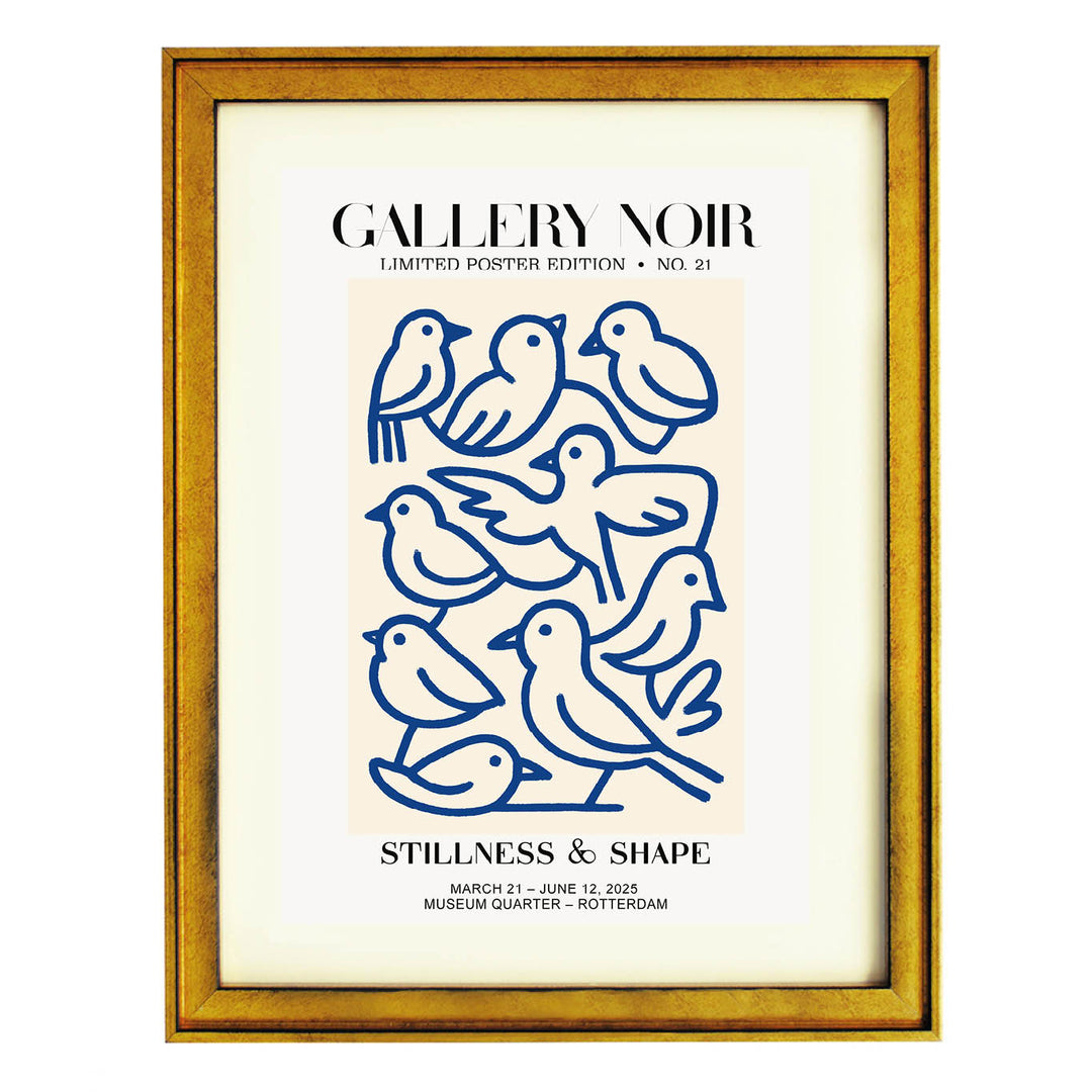 A flurry of stylized birds takes center stage in this bold blue-on-ivory print. Equal parts childlike and composed, it offers visual rhythm and serene charm.