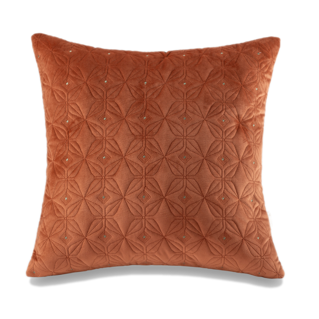 The name for this cushion derives itself from the traditional motif of, the 'rolling pin' the domestic kitchen device. In a repetive pattern, this cushion forms a jacquard like texture that is rich in pattern. It also consists of a bold colour, a reflection of the Indian summer that has yet to come.