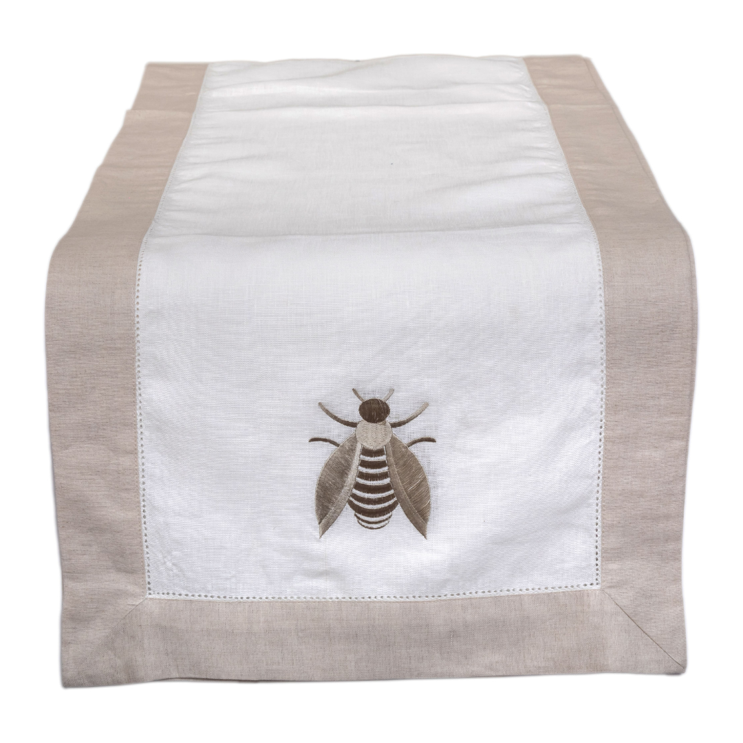 This elaborately embroidered grey beetle runner will add panache to your table setting.