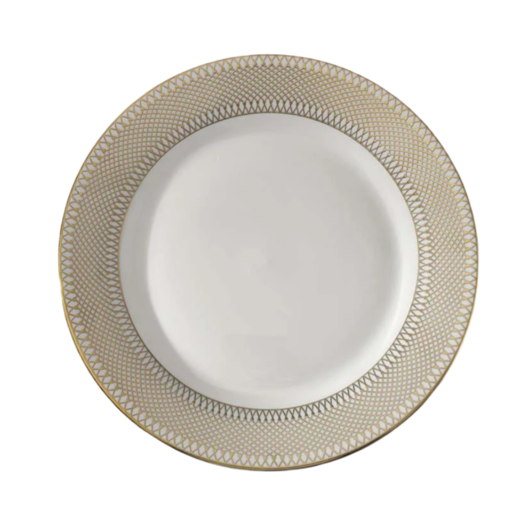 Minimal with just the right amount of gold-rimmed elan, this dinner side decks your table in elegance and panache. Pairs seamlessly with other tableware from Gold Rim selections.