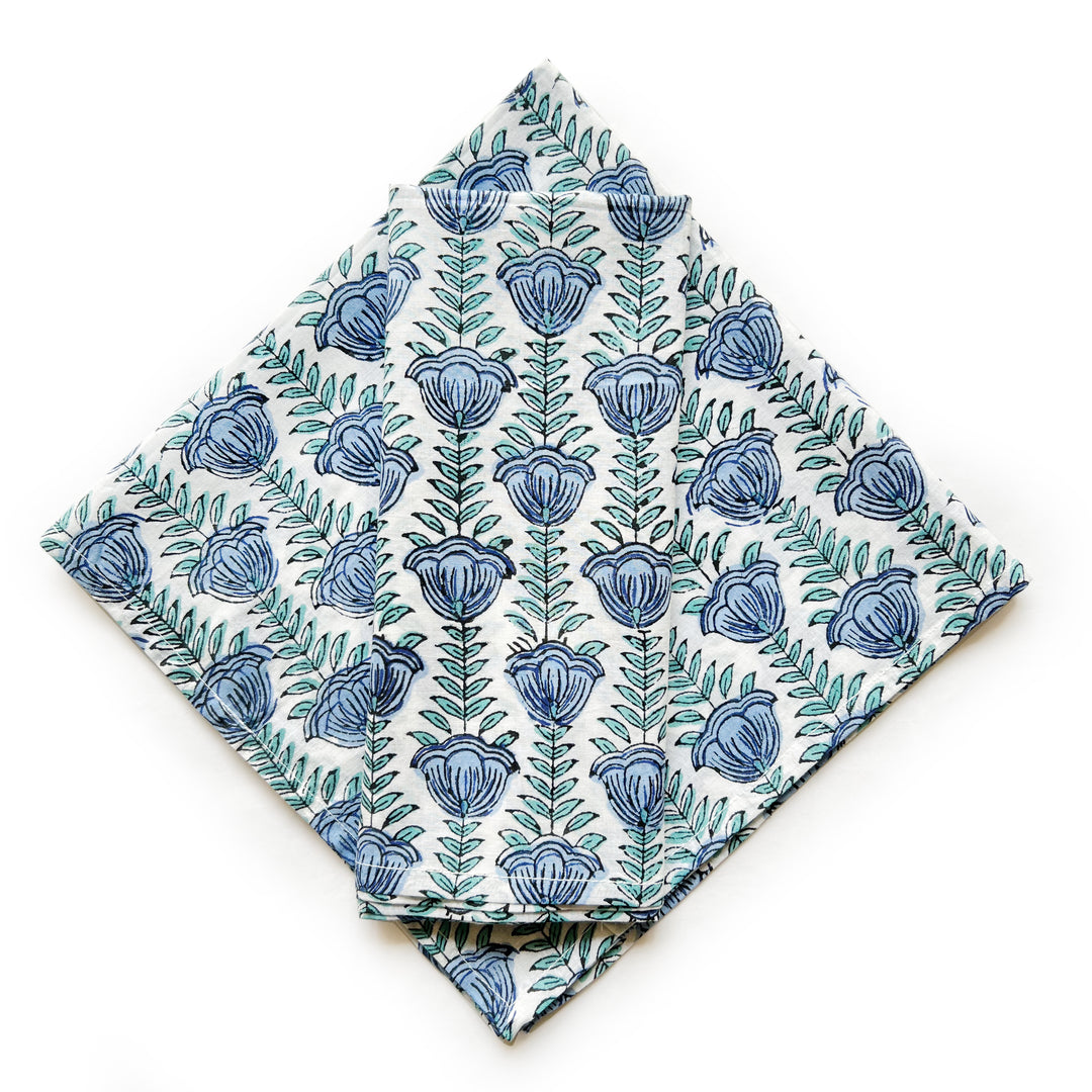 Mix and Match your table linen with these hand-blocked cotton table napkins. Each one features intricate designs carefully hand-stamped onto soft, pure cotton fabric. This collection draws inspiration from the vibrant hues of nature, offering a rich spectrum from terracottas to soothing blues, infusing your table with organic charm.