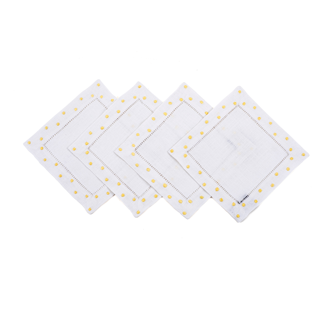 Showing up with cheer on brunch and sundowner tables, these spirited cocktail napkins with embroidered polka dots are a versatile bunch to pair with a diverse set of tableware. Definitely a host’s staple and a guest’s delight!