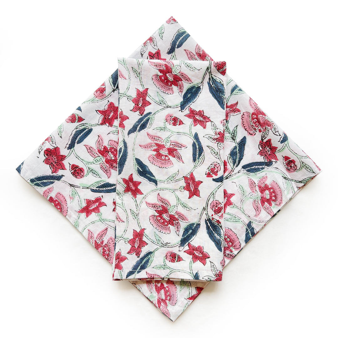 Mix and Match your table linen with these hand-blocked cotton table napkins. Each one features intricate designs carefully hand-stamped onto soft, pure cotton fabric. This collection draws inspiration from the vibrant hues of nature, offering a rich spectrum from terracottas to soothing blues, infusing your table with organic charm.