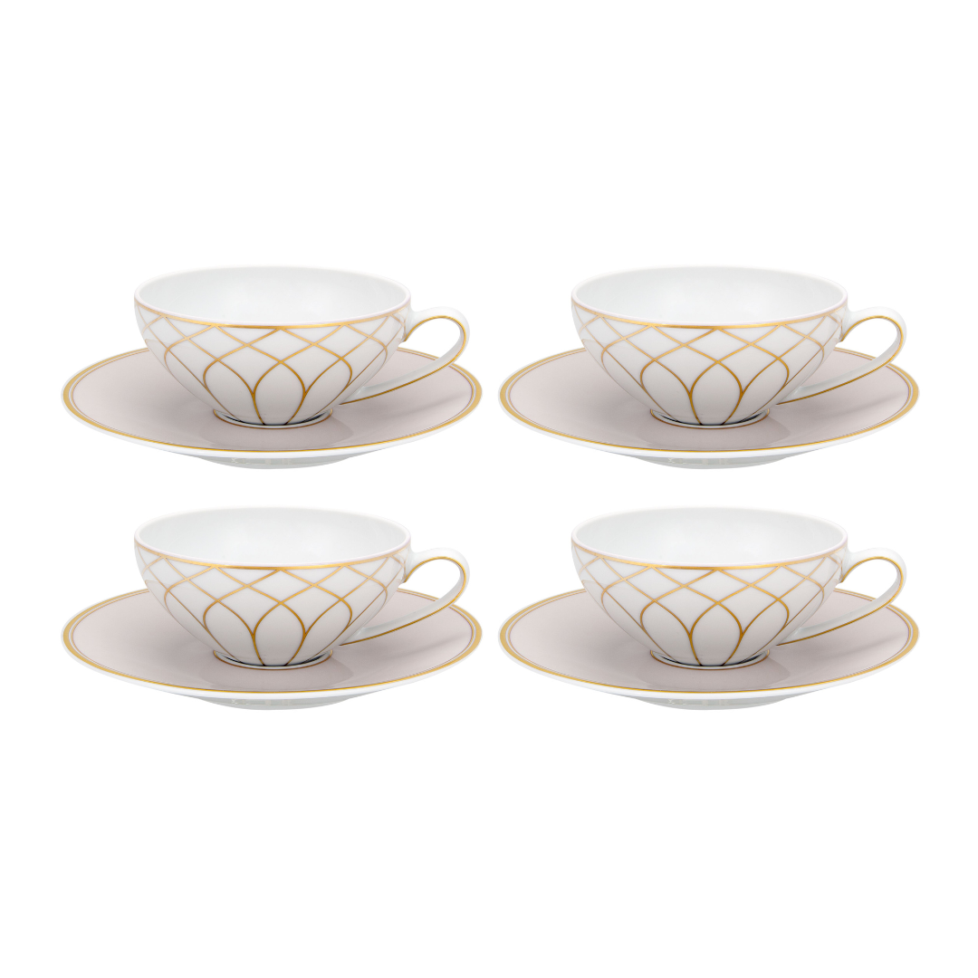 Tea Cup & Saucer. Richly decorated in gold, with hand-painted details. New elegant and distinct decoration. This new dinner set with a style that refers back to the Gothic art of the Renaissance era, results in a classic decoration with contemporary and timeless elements.