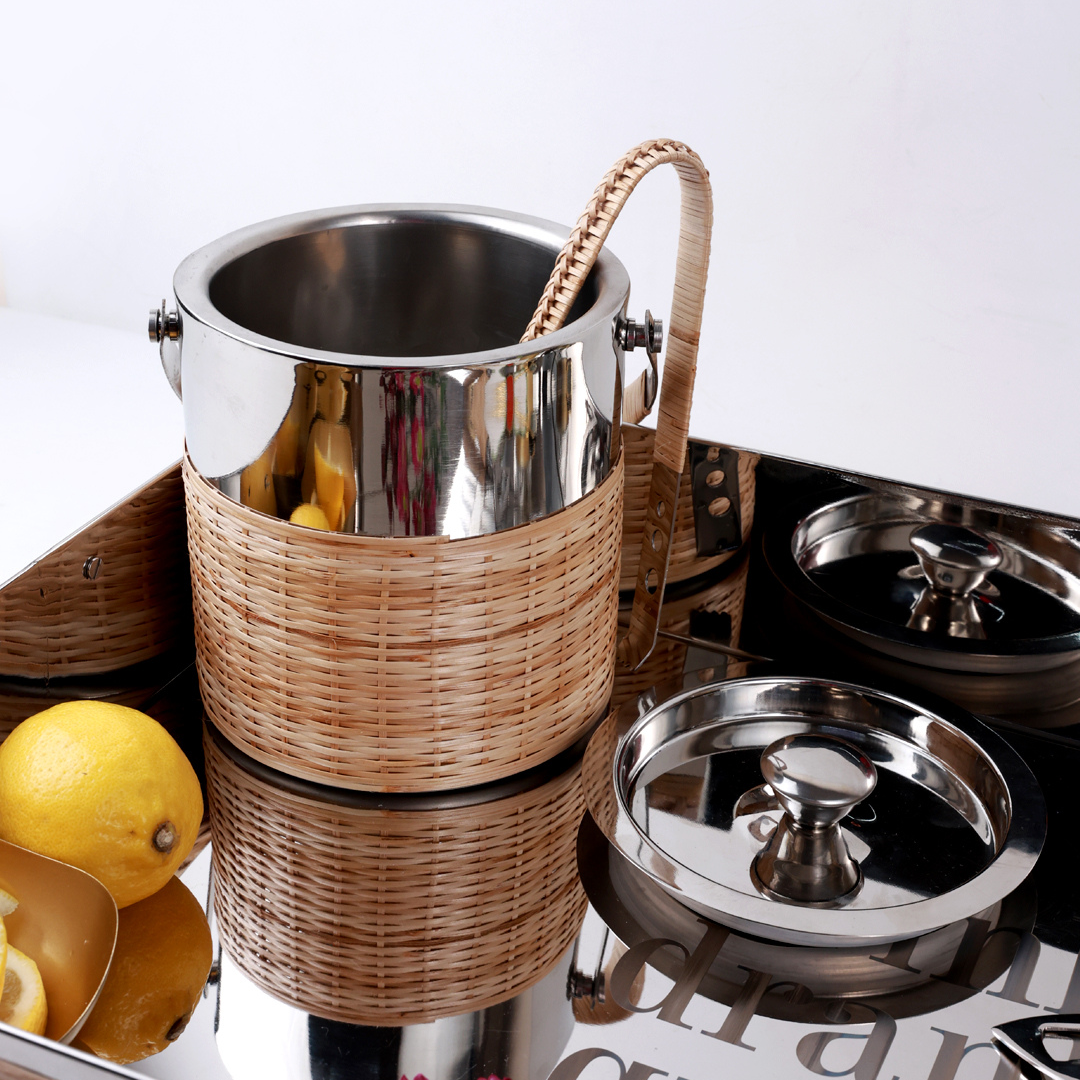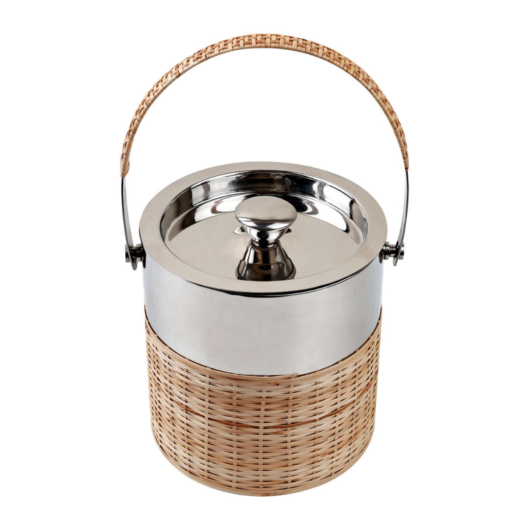 Keep your drinks perfectly chilled and your gatherings effortlessly stylish with this Rattan & Steel Round Ice Box. The natural woven rattan exterior brings a touch of coastal charm, while the durable stainless-steel interior ensures lasting temperature control. Complete with matching steel tongs, it’s perfect for serving ice cubes at picnics, patio parties, or indoor celebrations.
