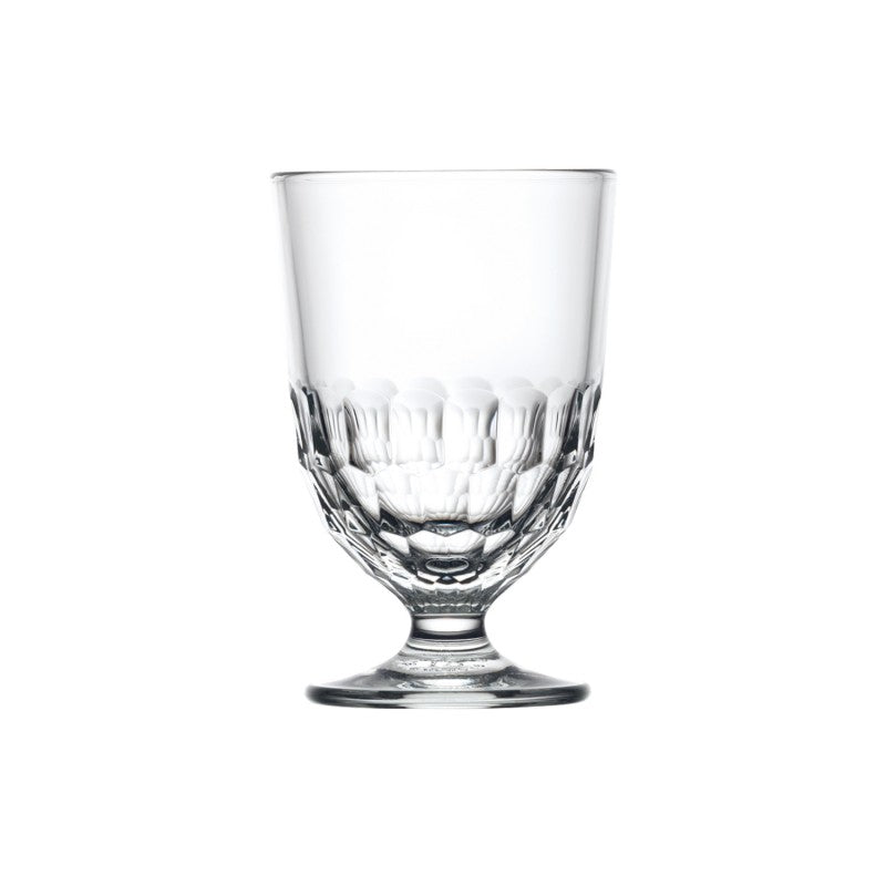 Tumbler with low foot in pressed glass. With a honeycomb cut decoration. Artois revisits a model of the glassware dating from 1895.