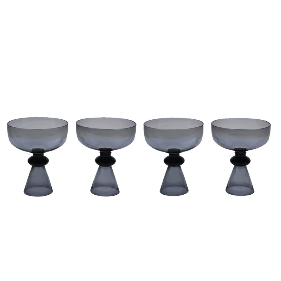 Handcrafted in glass, this set of two dessert bowls features a sleek black finish and a modern design. Perfectly sized for serving ice cream, desserts, or even drinks, these bowls combine contemporary elegance with versatile functionality, adding a sophisticated touch to any table or occasion.