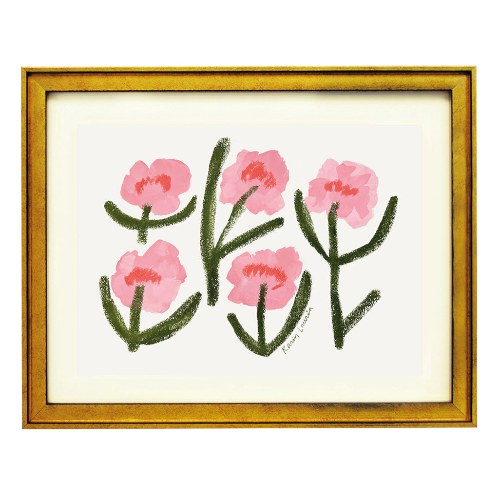 Three hand-painted blossoms rendered in gentle watercolor tones. A delicate, modern floral print that speaks to grace and simplicity.