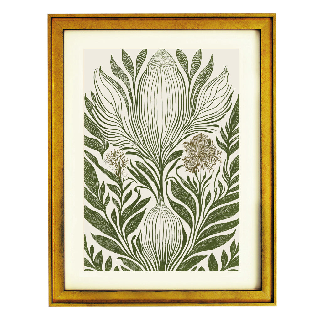 A composition of layered leaves and unfolding forms, Verdant Bloom evokes the rhythm of a flourishing garden. Its hand-drawn detailing and refined palette create a serene focal point — a contemporary take on classic botanical artistry.