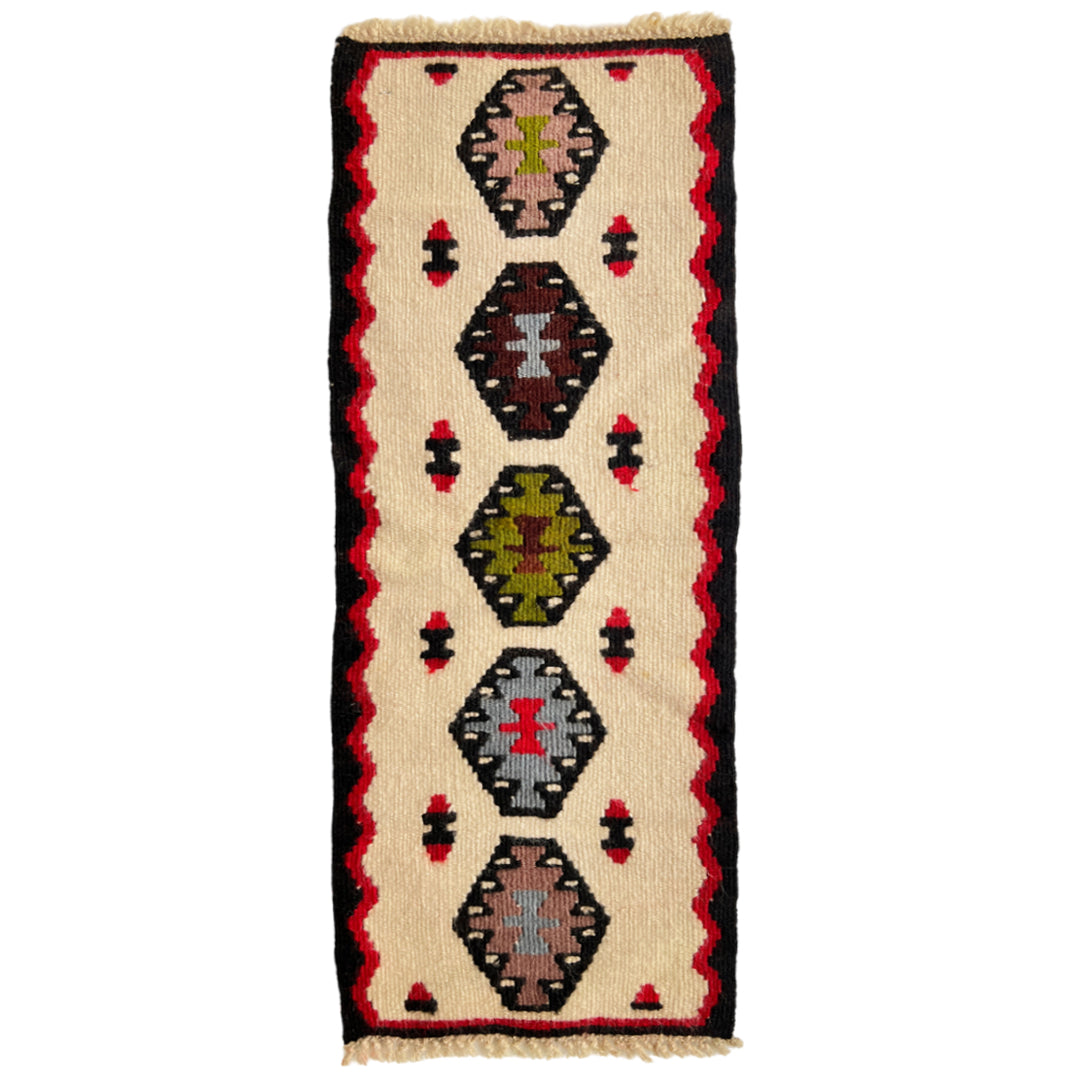 These rare vintage mats & runners are truly a collectors find. Dating back to the Soviet Era, these kind of pieces are no longer in production. Hand-woven in fine wool and vibrant colours by the Turkman tribesmen of Azerbaijan deep in the mountain chains of the Caucasus region, north to south of Caspian Sea, these are one of a kind. Each piece tells a story, a story about the weaver’s life, community and the time. This is a unique opportunity to get a gorgeous piece from a time gone by. Once they are gone, they are gone.
