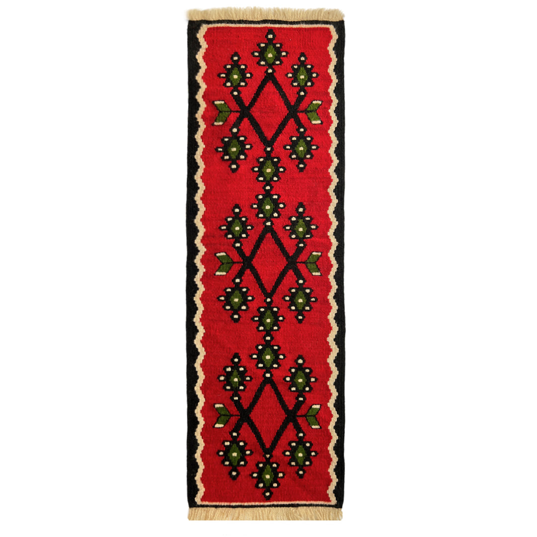 These rare vintage mats & runners are truly a collectors find. Dating back to the Soviet Era, these kind of pieces are no longer in production. Hand-woven in fine wool and vibrant colours by the Turkman tribesmen of Azerbaijan deep in the mountain chains of the Caucasus region, north to south of Caspian Sea, these are one of a kind. Each piece tells a story, a story about the weaver’s life, community and the time. This is a unique opportunity to get a gorgeous piece from a time gone by. Once they are gone, they are gone.