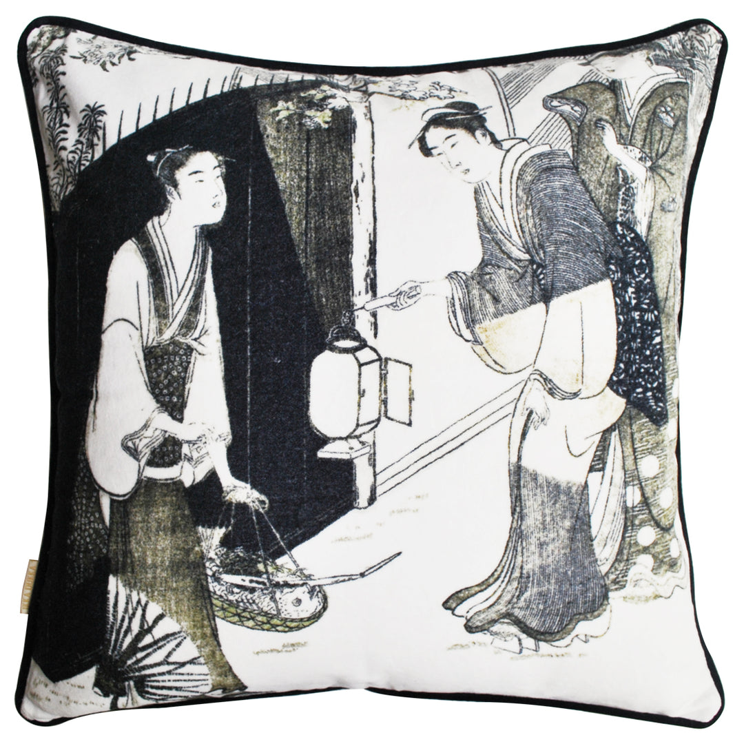 Beauty of the Floating World: These sumptuously soft velvet cushion covers feature prints from the Edo period in Japan, called ukiyo-e (pictures of the floating world). Luxurious and vibrant these cushions embody the essence of 'Ukiyo'. Featuring stunning kimono prints on the back, these covers can be used two-ways.