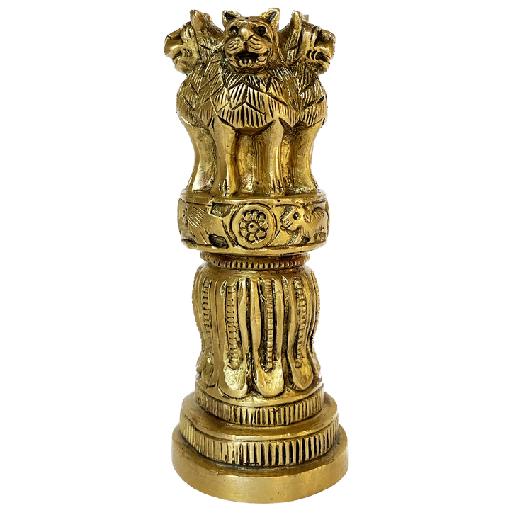 Entirely crafted out of brass, this Ashoka Pillar artefact is a stunning, unique piece handcrafted by skilled artisans. Tall and magnificent, it is ornately carved with engravings all over its surface. The top of the pillar features the four lions, while the rest of the pillar has depictions of Ashoka’s edicts and other important symbols and motifs.