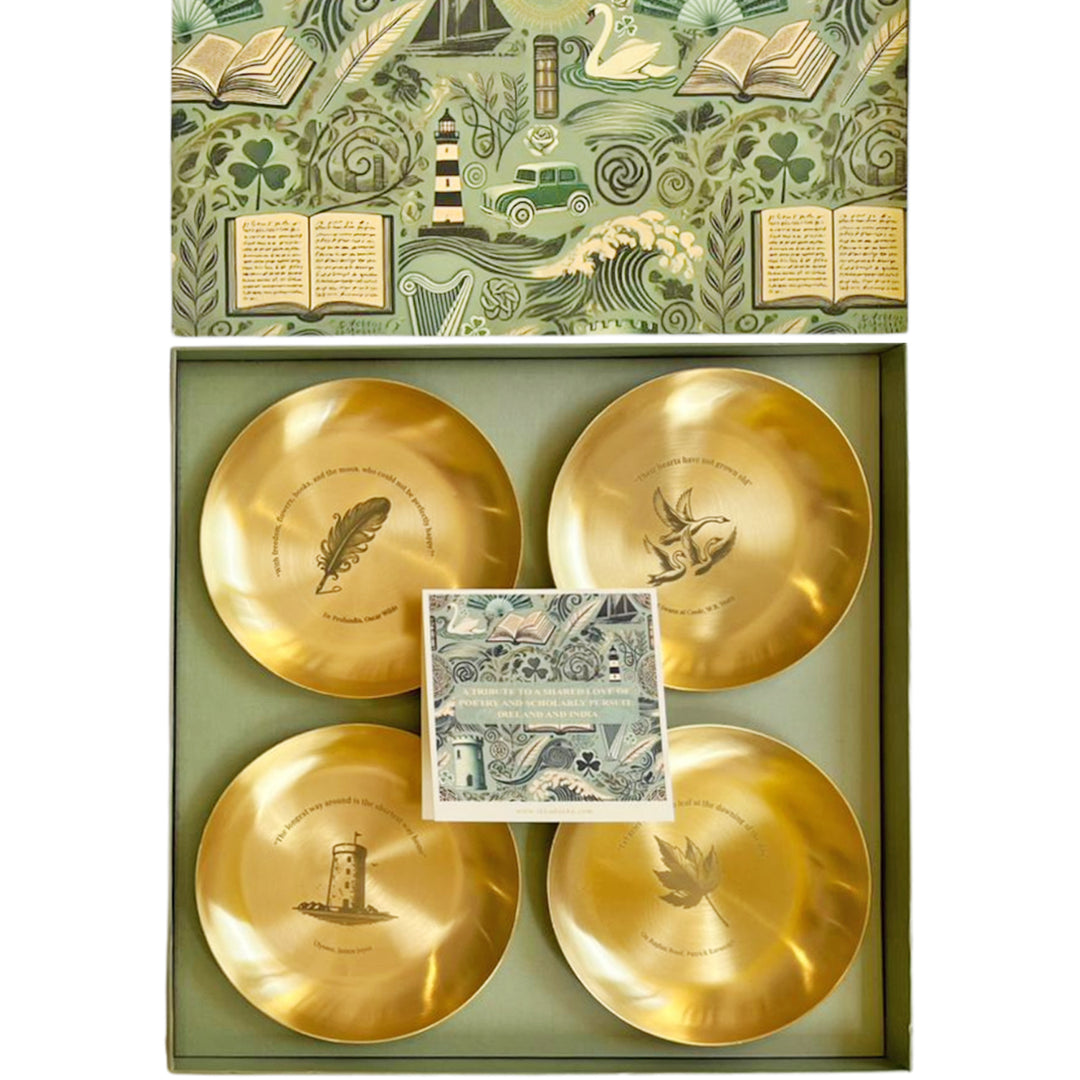 In this box, you’ll find four beautifully etched brass platters - versatile and charming, perfect as cookie plates, trinket trays, or even as beautiful wall decor pieces.