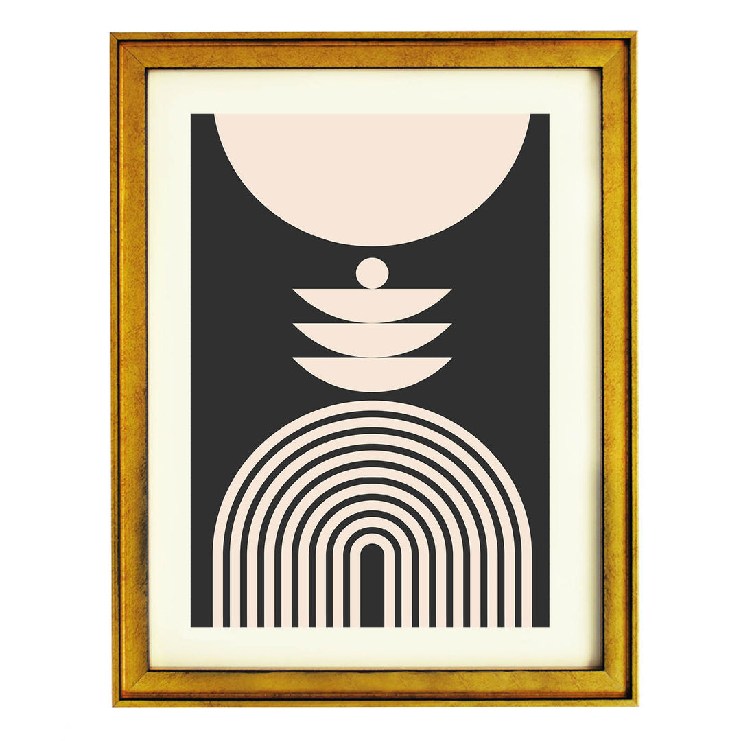 With a high-contrast black and blush palette, this piece offers an abstract take on lunar cycles and sacred symmetry. Striking yet meditative, it’s a bold statement for any modern room.