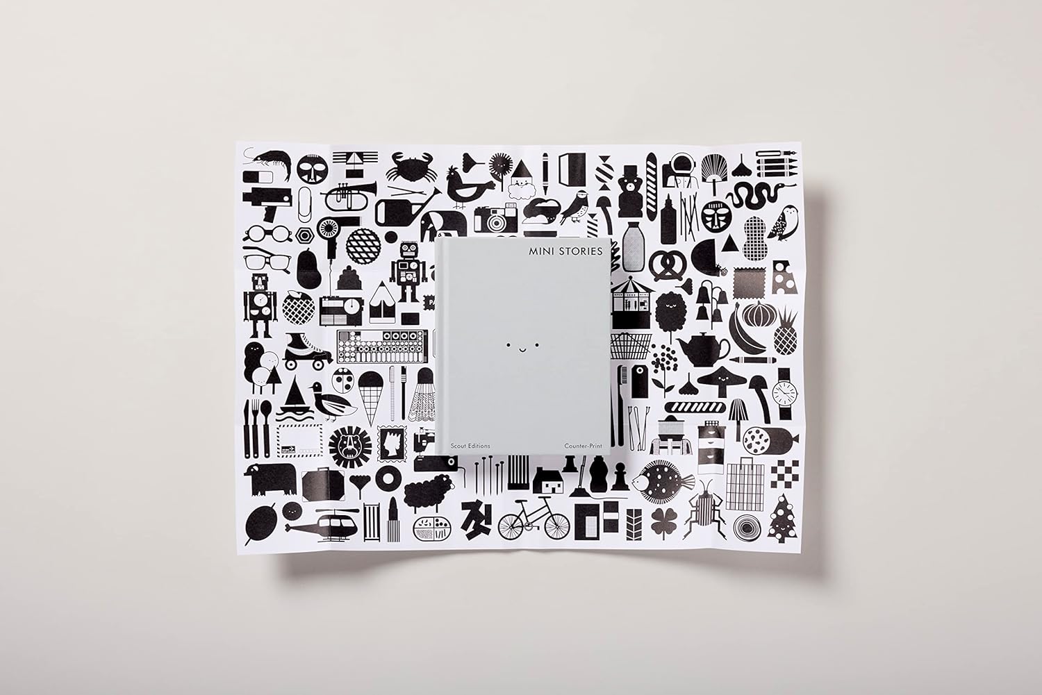 Mini Stories boasts eight distinct bellyband designs, each adorned with a unique illustration from the book. These thoughtfully designed bellybands fold out to reveal a black and white poster showcasing a collection of icons, specially crafted by Scout Editions.
